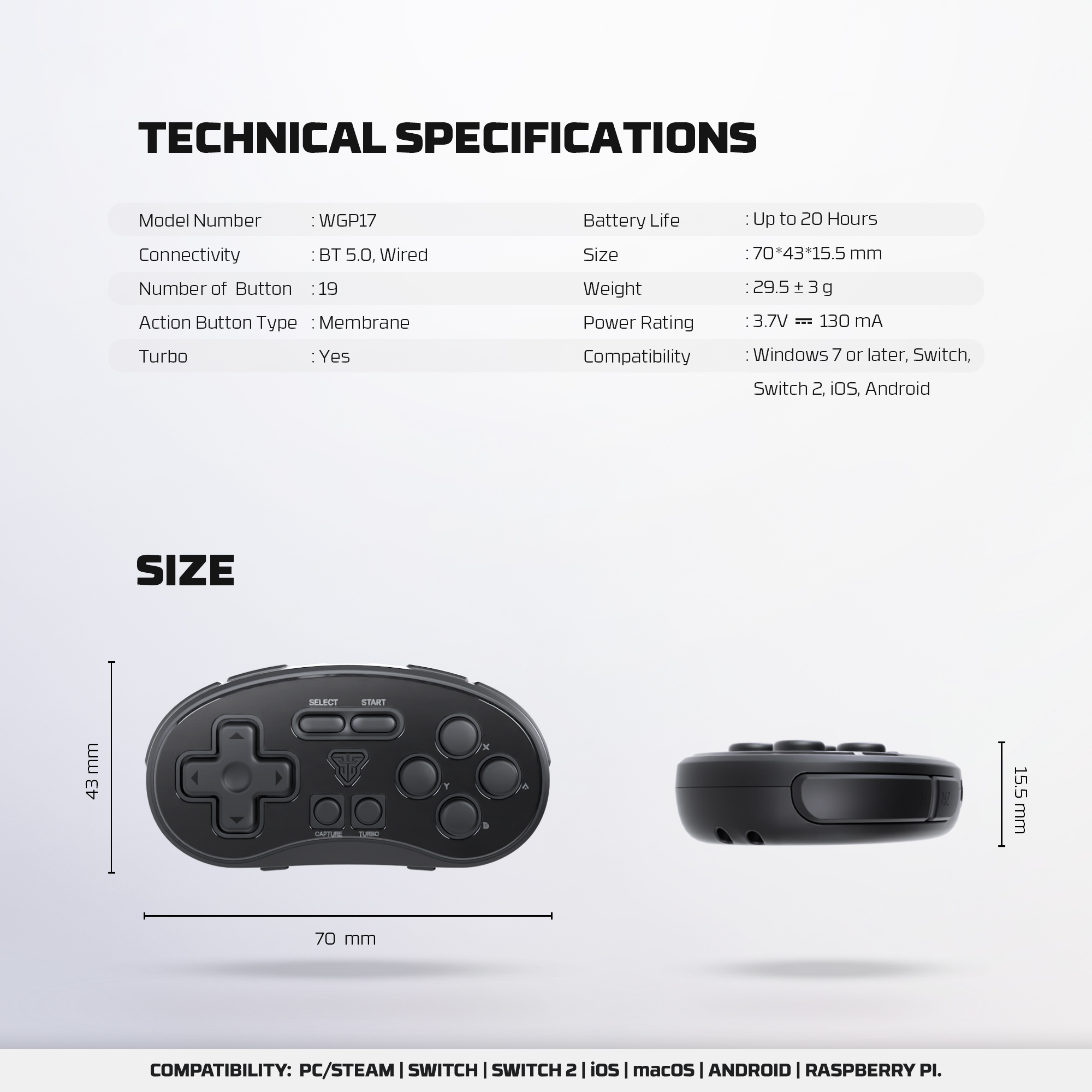 | Color | Black, Blue, Gray, Pink |