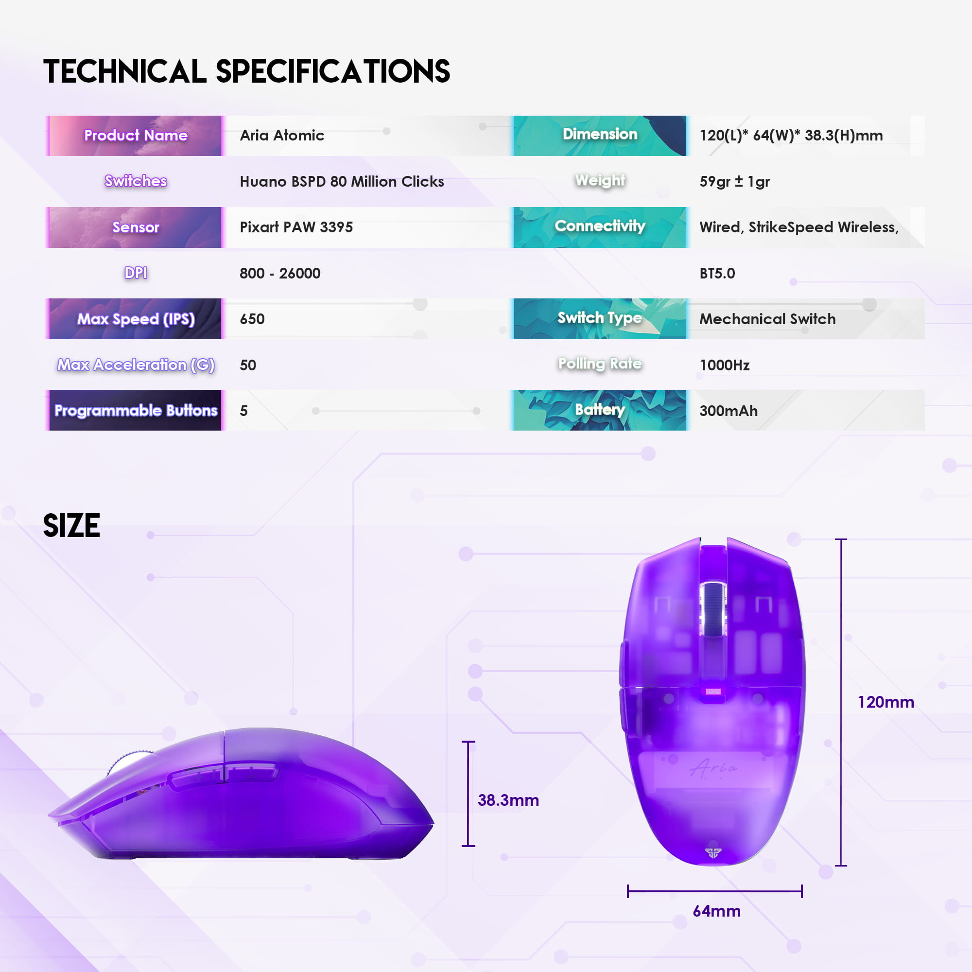 | color | Black, White, Pink, Beige, Atomic Blue, Atomic Purple |
