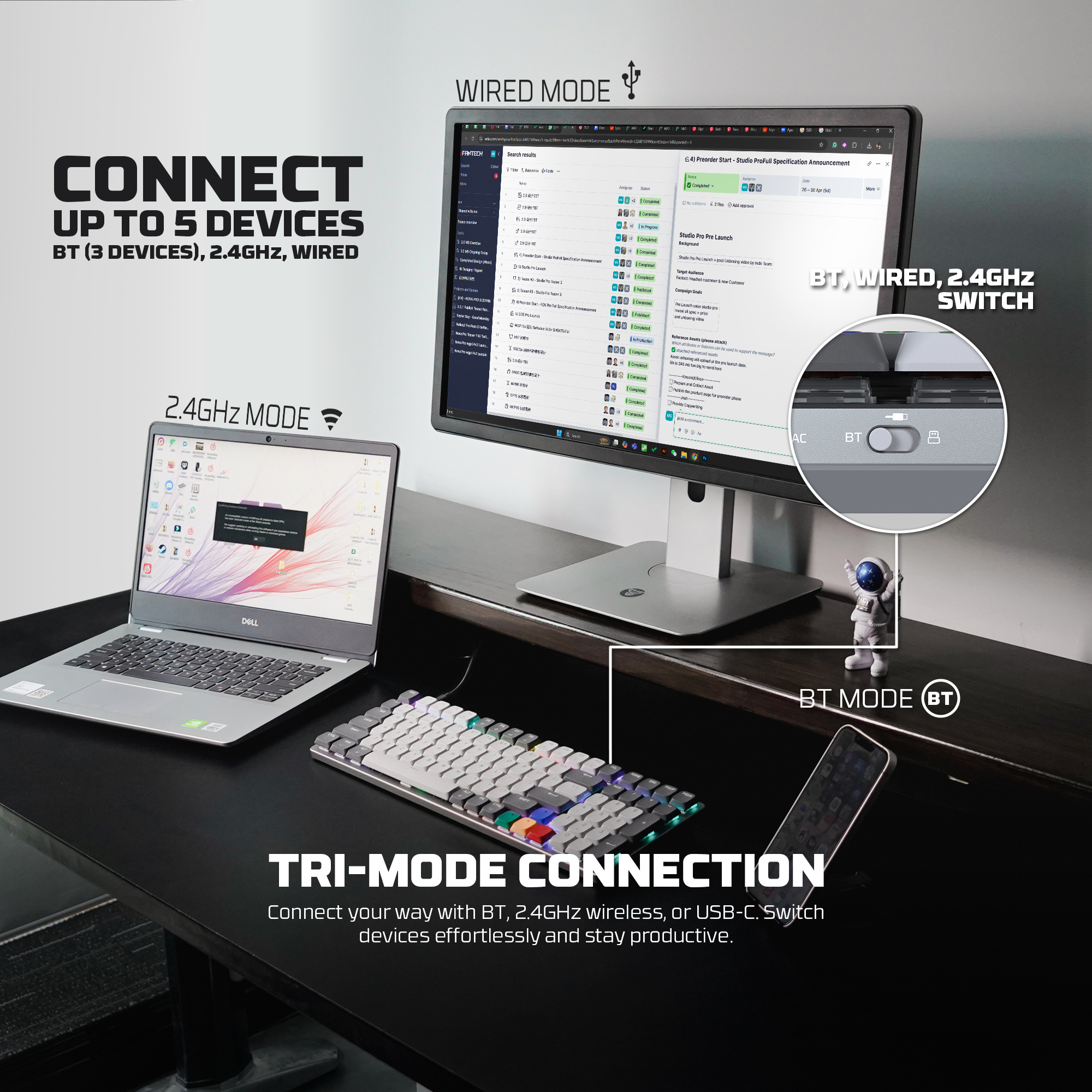 FANTECH SUPER MAXFIT AIR99 MK916 95% LOW PROFILE WIRELESS MECHANICAL KEYBOARD – 3 Connection Mode