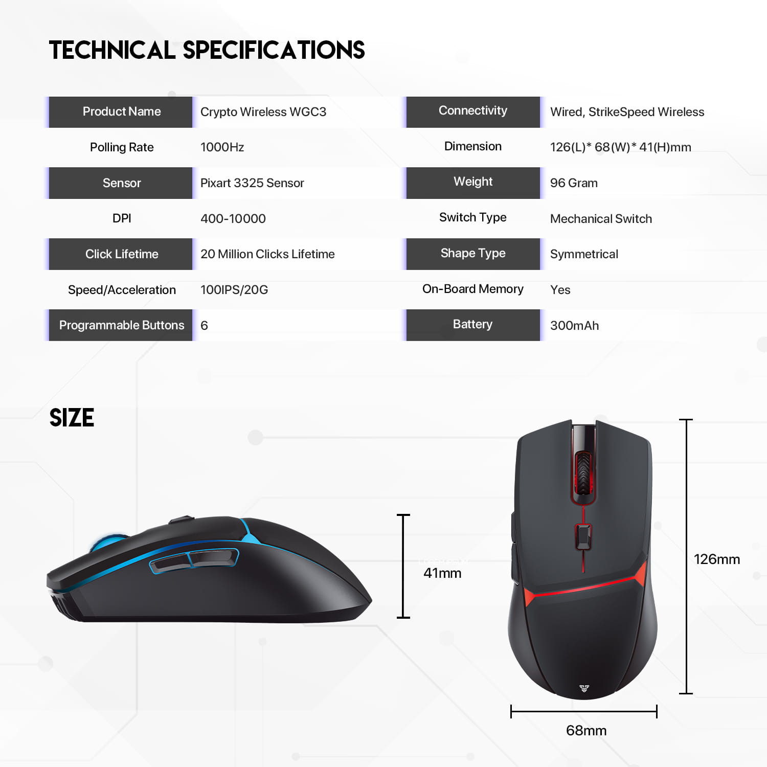• Fantech Crypto Wireless WGC3 Gaming Mouse