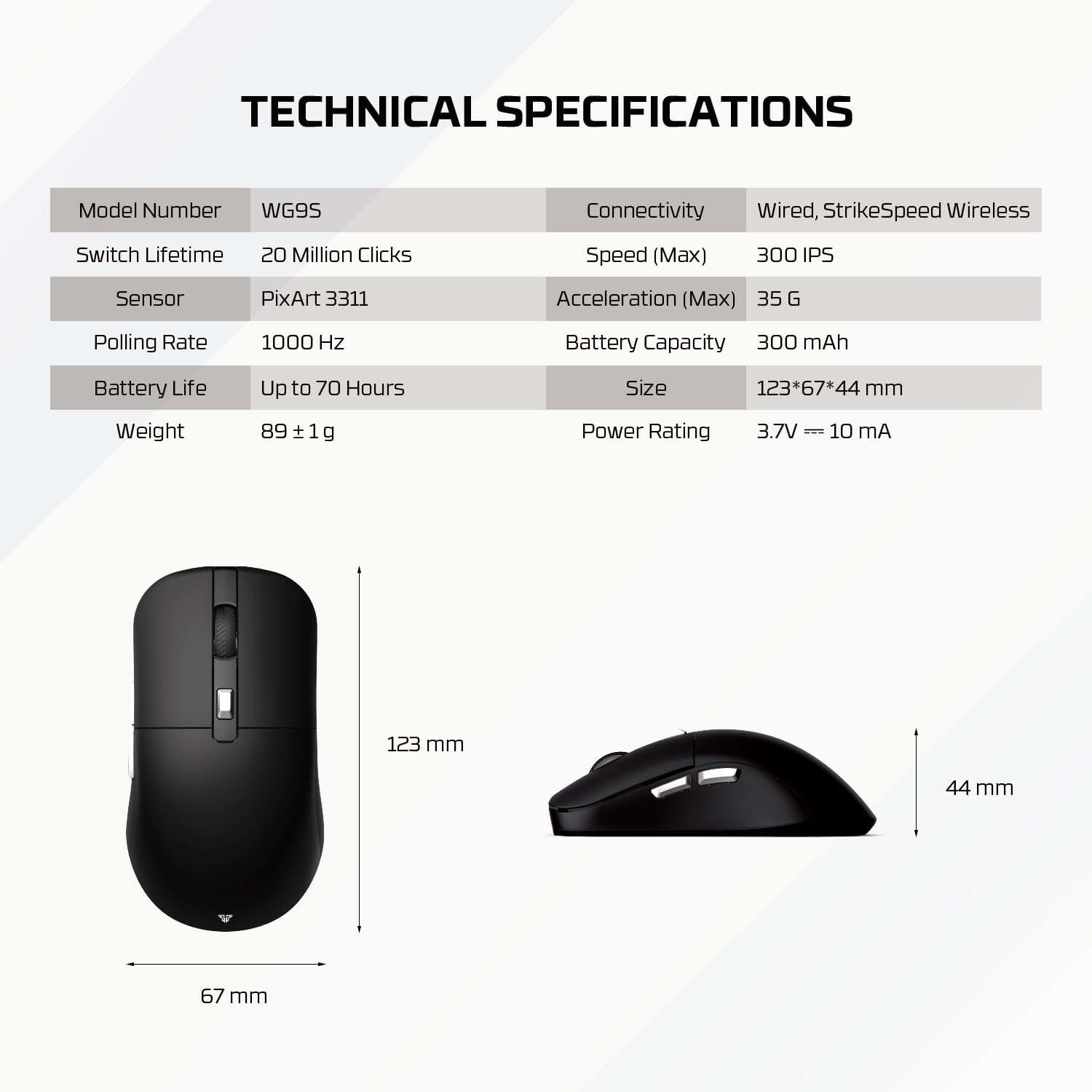 • Connectivity: Wired, strike speed wireless