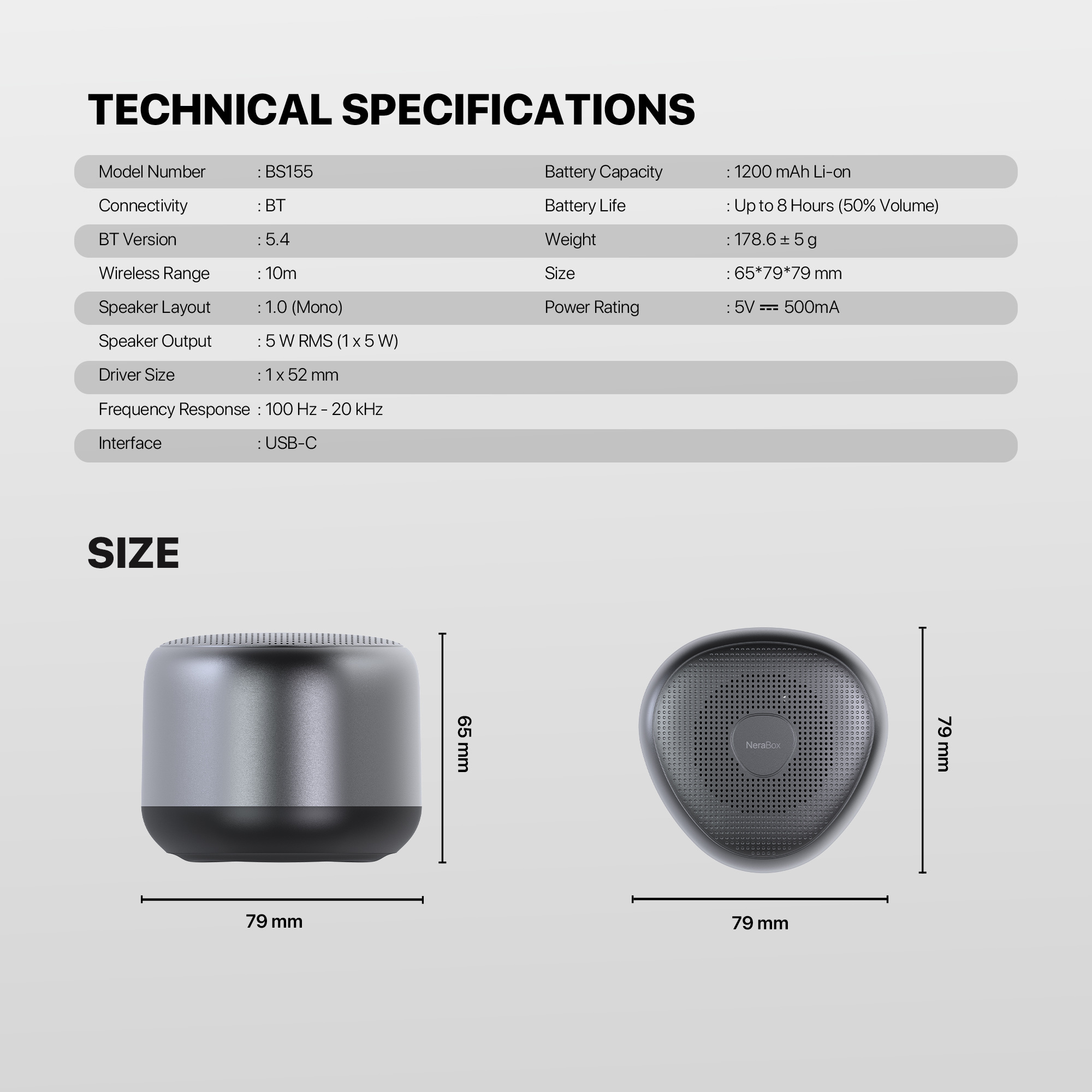 🔊 Fantech BS155 NeraBox – Technical Specifications