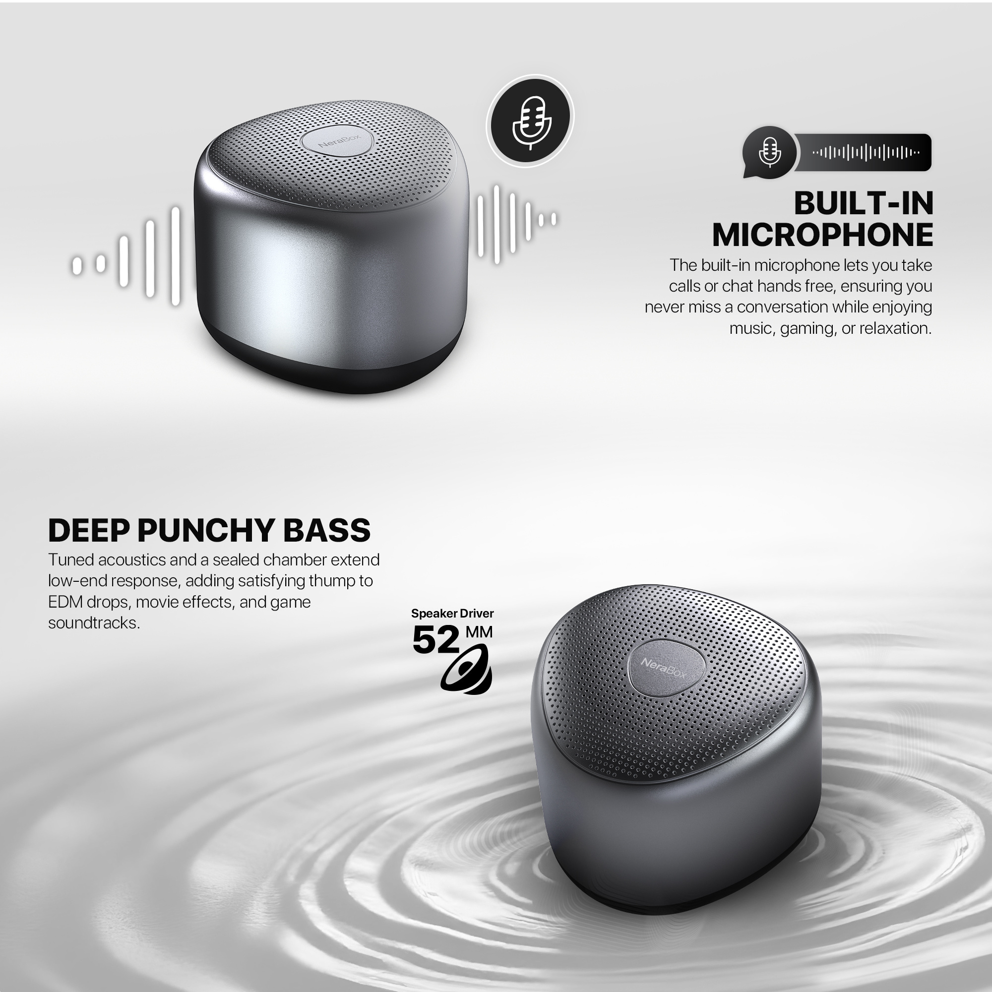 • Bass Enhancement: Not specified (likely passive diaphragm not mentioned here)